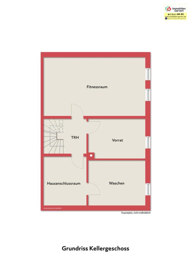 Das Haus ist vollständig unterkellert (mit einer Geschosshöhe von 2,45 m) und verfügt über eine sogenannte "weiße Wanne", welche einen hohen Schutz vor Feuchtigkeit bietet.
