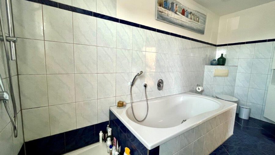 -Bad mit Dusche, Toilette und Badewanne, 2 Waschtische
