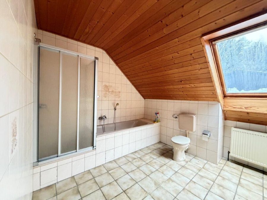 Im Dachgeschoss finden Sie drei großzügige Schlafzimmer, die durch ihre Helligkeit und Raumaufteilung bestechen. Ein Abstellraum bietet zusätzlichen Stauraum und rundet das Angebot im oberen Bereich ab. Das Badezimmer im Dachgeschoss ist mit Tageslicht ausgestattet und verfügt über sowohl eine Dusche als auch eine Badewanne, WC und Waschtisch.