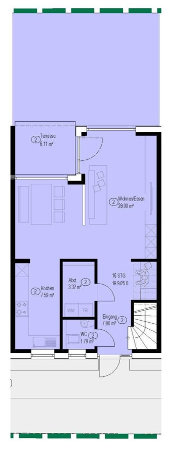 Reihenhaus – WE 2, Wohnfläche ca. 101 m²