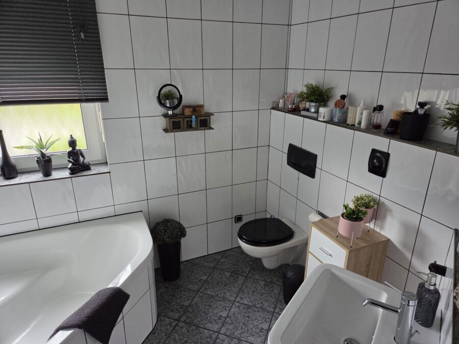 -Bad OG: WC, Waschbecken, Dusche, Wanne